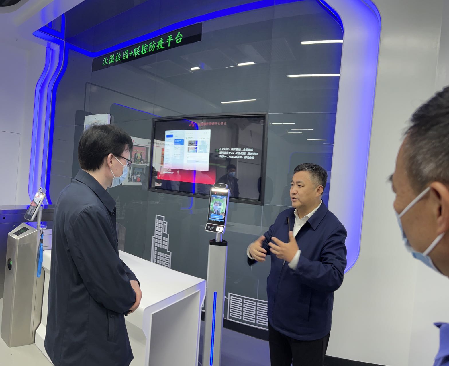 云南联通常务副总经理温涛代表云南联通向张书记一行详细介绍了云南联通5G展厅防疫平台、智慧云农、网联无人机、智慧城市等板块内容及环湖东路数据机房。