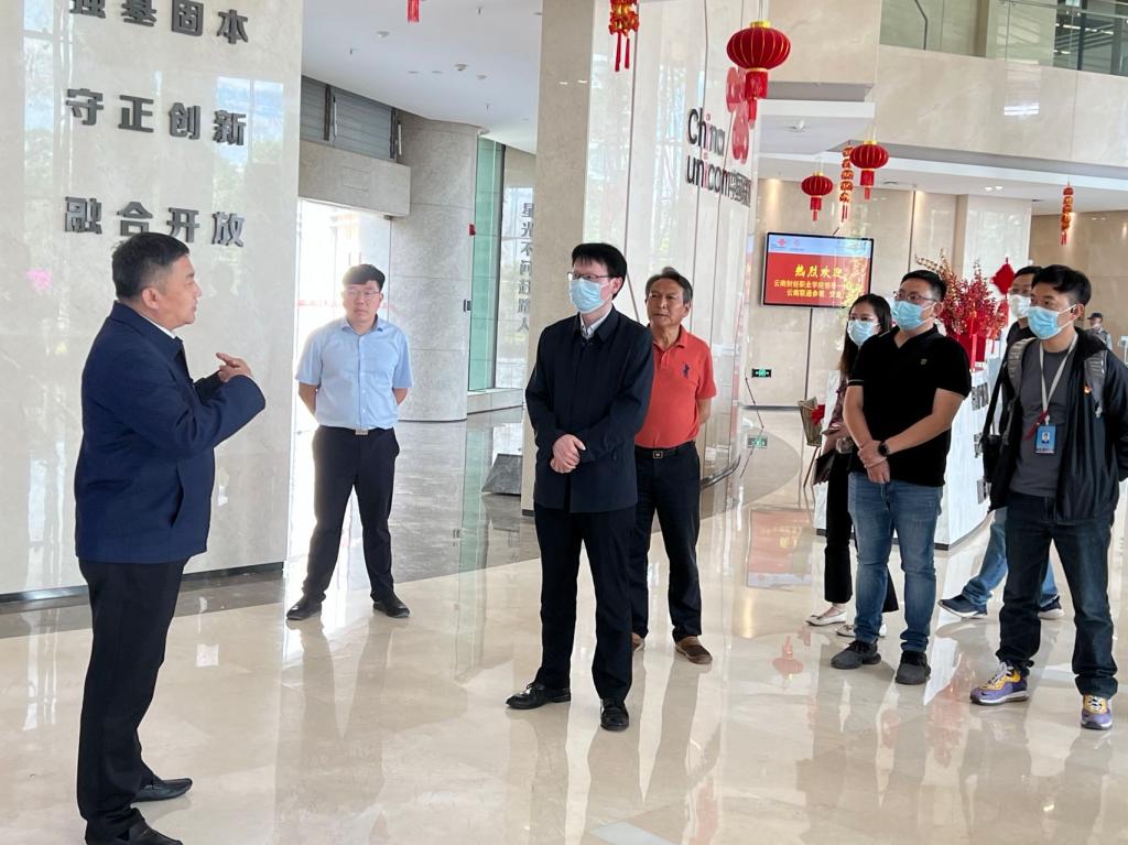 2022年5月11日,学校党委书记张金甫同志一行到中国联通云南分公司就校企合作、产教融合和拓岗促就业等进行交流研讨。