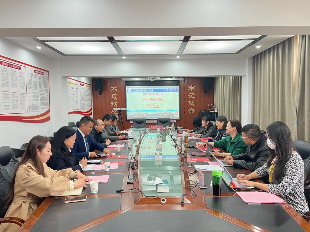 11月9日上午,学校与东润教育集团召开校企交流会。学校党委副书记、校长邹丽,东润教育集团董事长李兴臣、总裁何永济出席了此次会议。