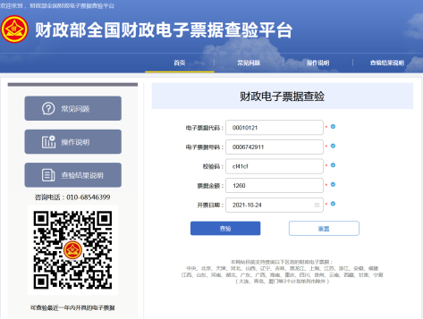 B.非税收入票据验证网页http://pjcy.mof.gov.cn/#/home