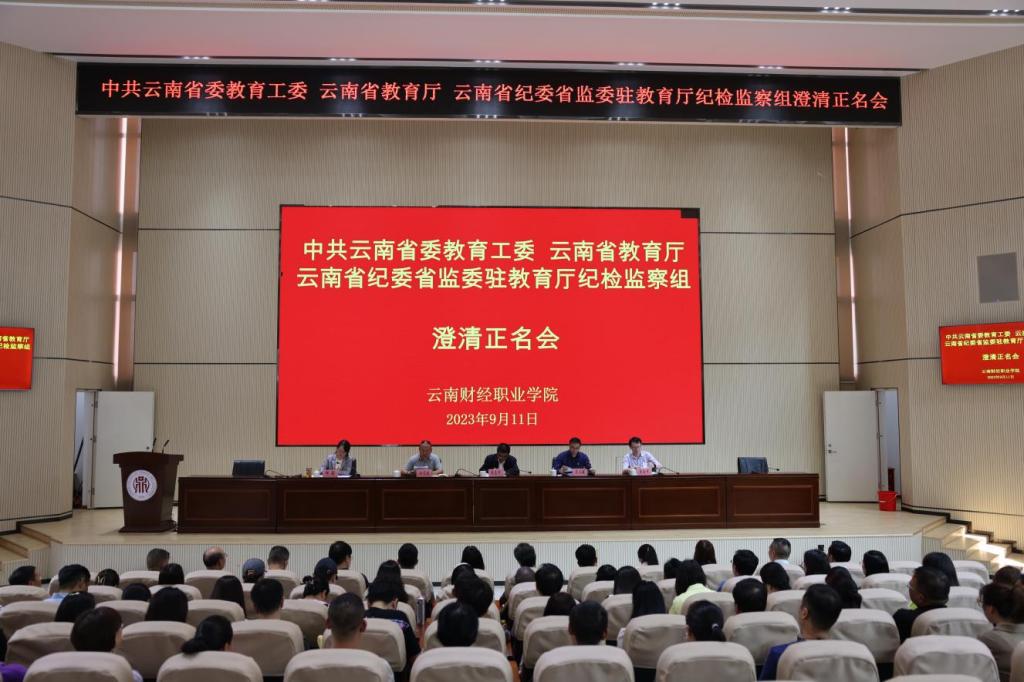2023年9月11日,省委教育工委、省纪委监委驻省教育厅纪检监察组在云南财经职业学院召开失实检举控告澄清正名会,对多次反映学校党委书记张金甫同志的信访举报核查情况进行反馈,对相关问题当场予以澄清。