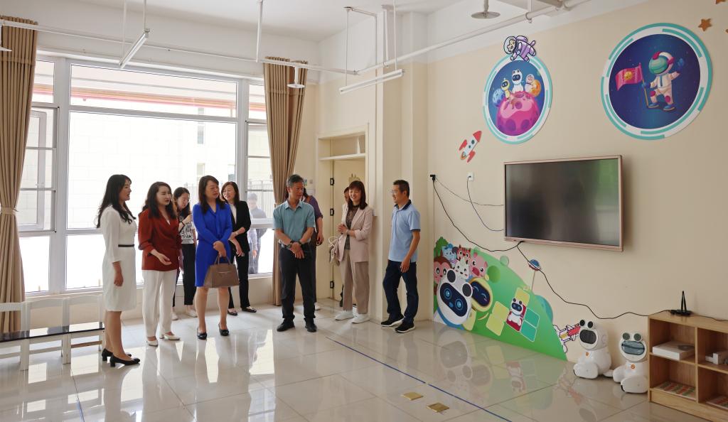 邹丽一行实地参观了幼儿园的户外活动场地、教学楼、多功能厅、生活体验馆等,并深入班级查看了幼儿的生活与学习日常。