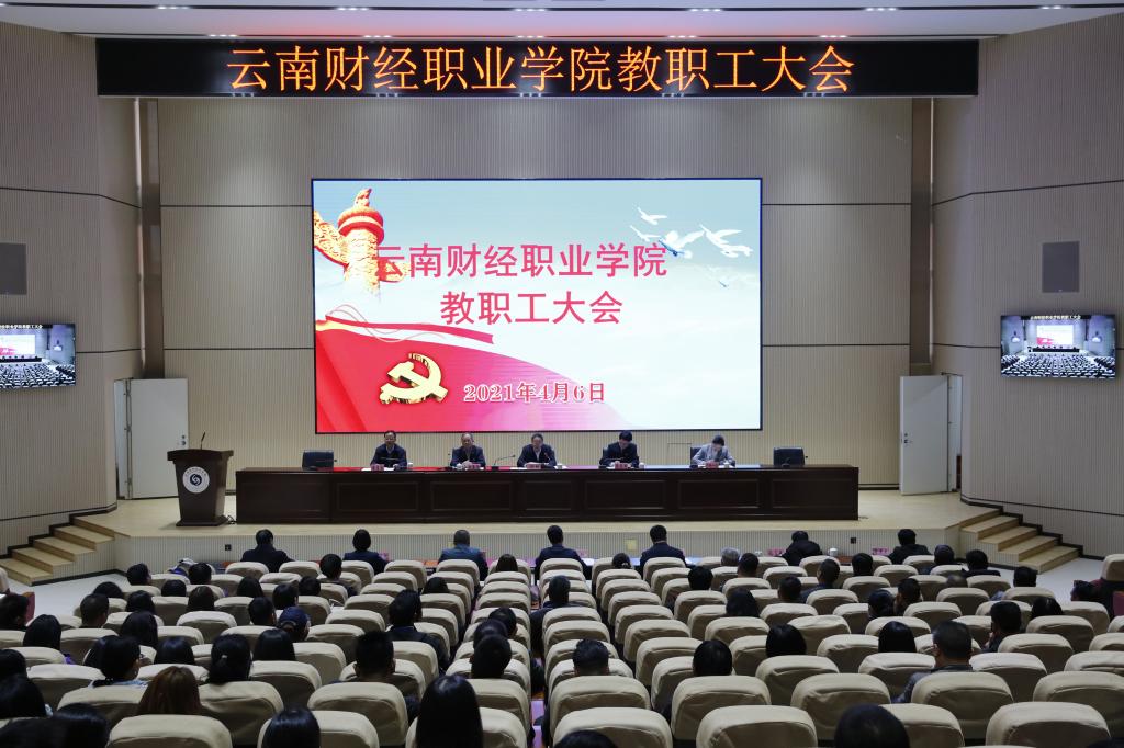 4月6日上午,我校召开全校教职工大会,云南省委教育工委常务副书记、省教育厅党组成员杨林同志莅临学校宣布学校领导干部调整事项。省委教育工委组织部一级主任科员孔飞跃同志、云南财经大学党委组织部副部长庞春平同志出席会议。会议由学校党委副书记、校长陶昌学同志主持。