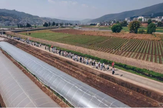 在重走长征路的活动中,参学人员分为三个连队高举旗帜,追寻先烈足迹、体验长征艰辛,心中的信仰更加坚定;感受民族团结进步、见证柯渡山乡巨变、脚下的步伐更加有力。