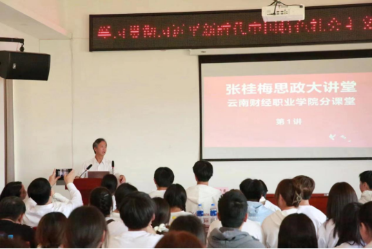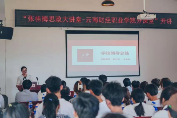 仲新宣布“张桂梅思政大讲堂——云南财经职业学院分课堂”开讲。他指出,开设“张桂梅思政大讲堂-云南财经职业学院分课堂”旨在以分课堂的形式发挥好“张桂梅思政大讲堂”的政治感召力、理论说服力、实践吸引力、示范引领力,带动我校思想政治工作质量提升、内涵发展,教育引导全校师生深刻领悟“两个确立”的决定性意义,增强“四个意识”、坚定“四个自信”、做到“两个维护”。
