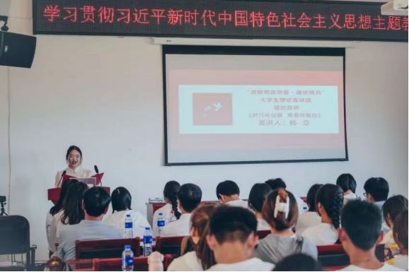 学校“鼎新思政讲堂·理论骑兵”大学生理论宣讲团宣讲员以《时代长征路 青春伴国行》为题进行了理论宣讲。她带领大家回顾了党的十八大以来习近平总书记的红色足迹,结合重走长征路的活动,号召同学们树立为祖国和人民永久奋斗、赤诚奉献的坚定理想。