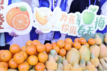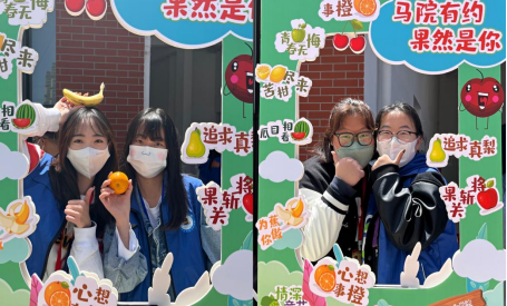 活动为同学们准备了多种水果和拍照道具,并寄予每种水果以美好寓意。心想事“橙”--冰糖橙,苦尽“柑”来--沃柑,“青”春无悔--青柚,“瓜”目相看--木瓜,追求真“梨”--水晶梨,为你“蕉”傲--香蕉,情深意“茄”--小番茄,“果”关斩将--苹果。其中苹果是为大三同学准备的专属水果,其余种类水果由大一大二的同学抽取。同学们不仅吃上极具仪式感的春日专属水果,而且和美好春日留下了亲密合影。
