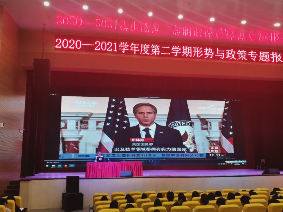 为让学生进一步认识构建以国内大循环为主体、国内国际双循环相互促进的新发展格局,是我们党和国家顺应发展规律,准确识变、科学应变、主动求变的重大战略型创新。2021年5月6日,思政部教师朵尔奎在大礼堂为我校2019级近700名学生做了题为“看懂新发展格局这盘大棋”的形势与政策专题讲座。