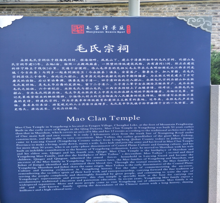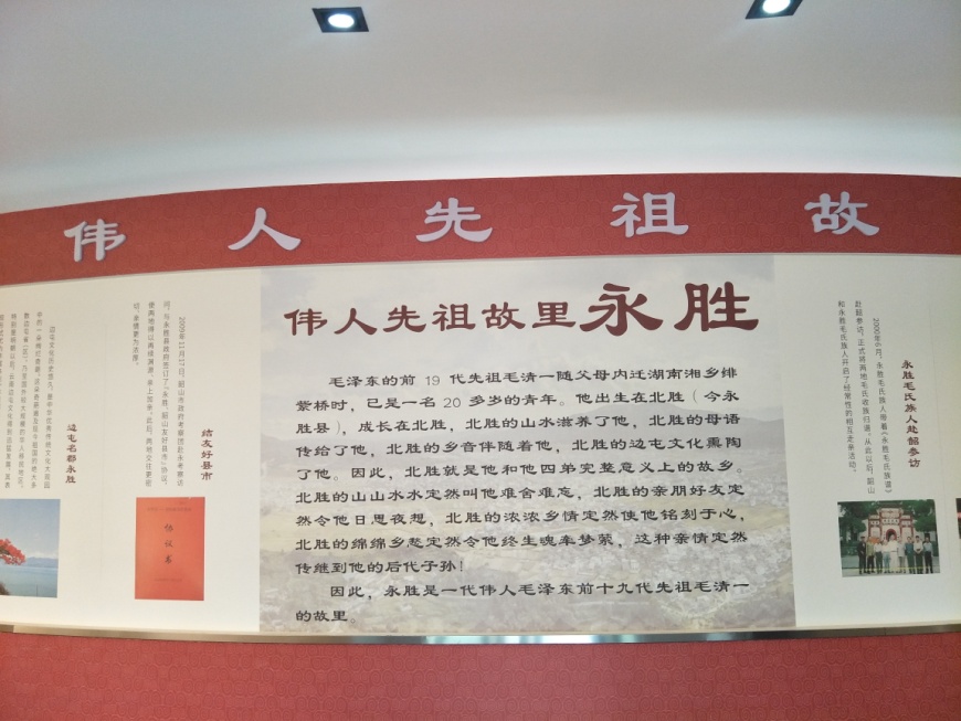 2020年8月2日,我们告别了新庄红军村,来到了云南省丽江市永胜县程海镇凤羽村委会的毛家湾,学习参观毛氏宗祠、边屯文化博物馆和中原文化传入云南的悠久历史。毛氏宗族,他们与韶山的毛家同宗同源,这里是韶山和永胜毛氏的发祥地。