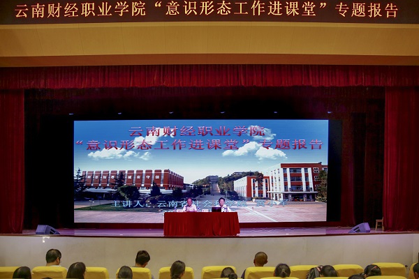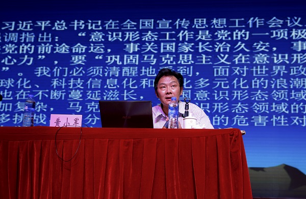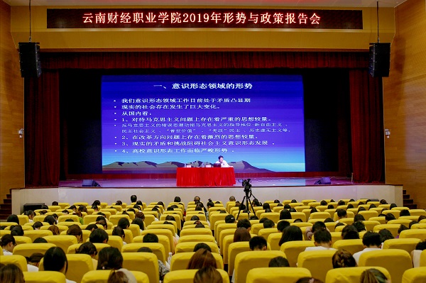 为深入学习贯彻习近平新时代中国特色社会主义思想和习近平总书记关于意识形态工作的系列重要讲话精神,全面提升学校意识形态工作水平,2019年5月20下午,学校邀请云南省社会科学院副院长、研究员、博士、黄小军教授作了题为《当前意识形态领域面临的形势与应对之策》的形势与政策专题报告会。报告会由学校党委书记李思泽同志主持,党委副书记、院长陶昌学,院长助理彭锋泽、刘宁飞,思政课全体专兼职教师及部分学生代表共计750余人聆听了专题报告会。