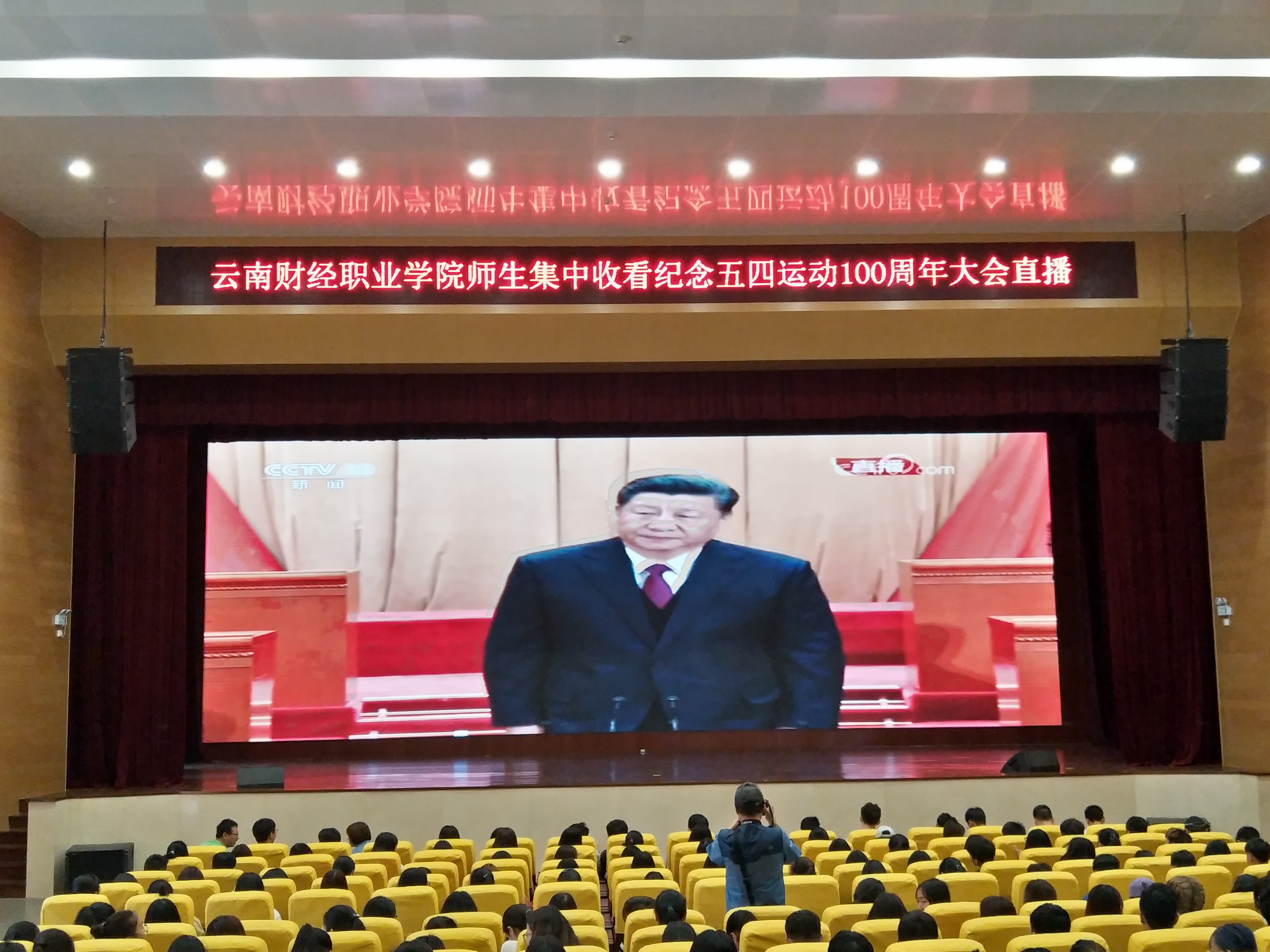 4月30日,纪念五四运动100周年大会在人民大会堂举行,中共中央总书记、国家主席、中央军委主席习近平出席大会并发表重要讲话。学院思政部在宣传部和教务处的配合下,组织一、二年级全体学生集中收看了大会直播,认真学习大会精神。