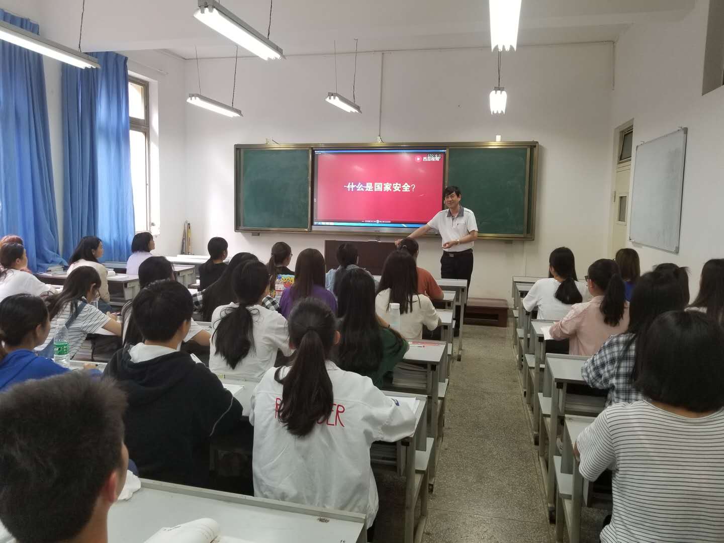 思政部结合学校教学的开展情况,由《概论》课教研室教师承担,完成对2018级全体学生的国家安全专题教学;由各系组织班主任负责,完成对2017级全体学生的国家安全专题教学。