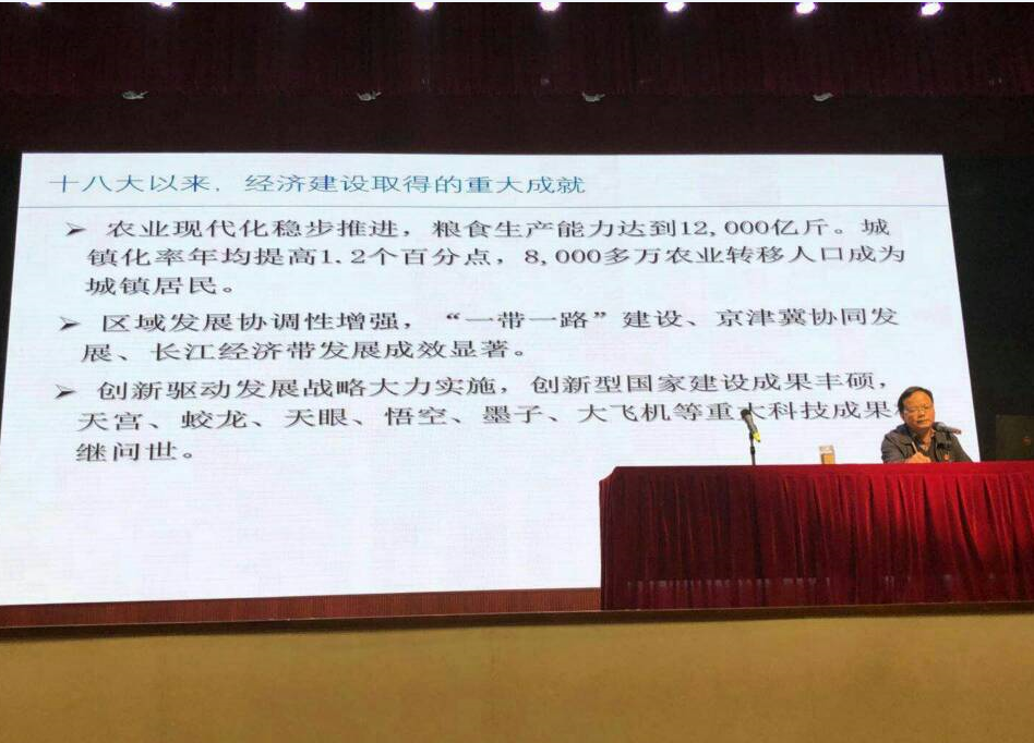 “同学们,实现中华民族伟大复兴是一个长期的历史过程,需要一代又一代有志青年继续奋斗……”2017年12月11日晚,学院院长、党委副书记陶昌学为2015级全体大专生讲授《当前中国经济形势》。