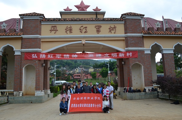 为全面推动习近平总书记系列重要讲话精神和治国理政新理念新思想新战略进教材、进课堂、进头脑,打一场提高高校思政课质量和水平的攻坚战,根据《教育部办公厅关于高校组织思想政治理论课主题学习实践活动的通知》精神,按照《2017年云南省高校思想政治理论课教学质量年专项工作实施方案》的要求,学院思政部成立了由师生共同组成的思政课主题学习实践小分二队,于2107年9月16日前往云南省爱国主义教育基地——寻甸县红军长征柯渡纪念馆参观学习,开展“追寻先辈足迹,缅怀革命先烈,重温入党誓词,坚定理想信念”教育活动。