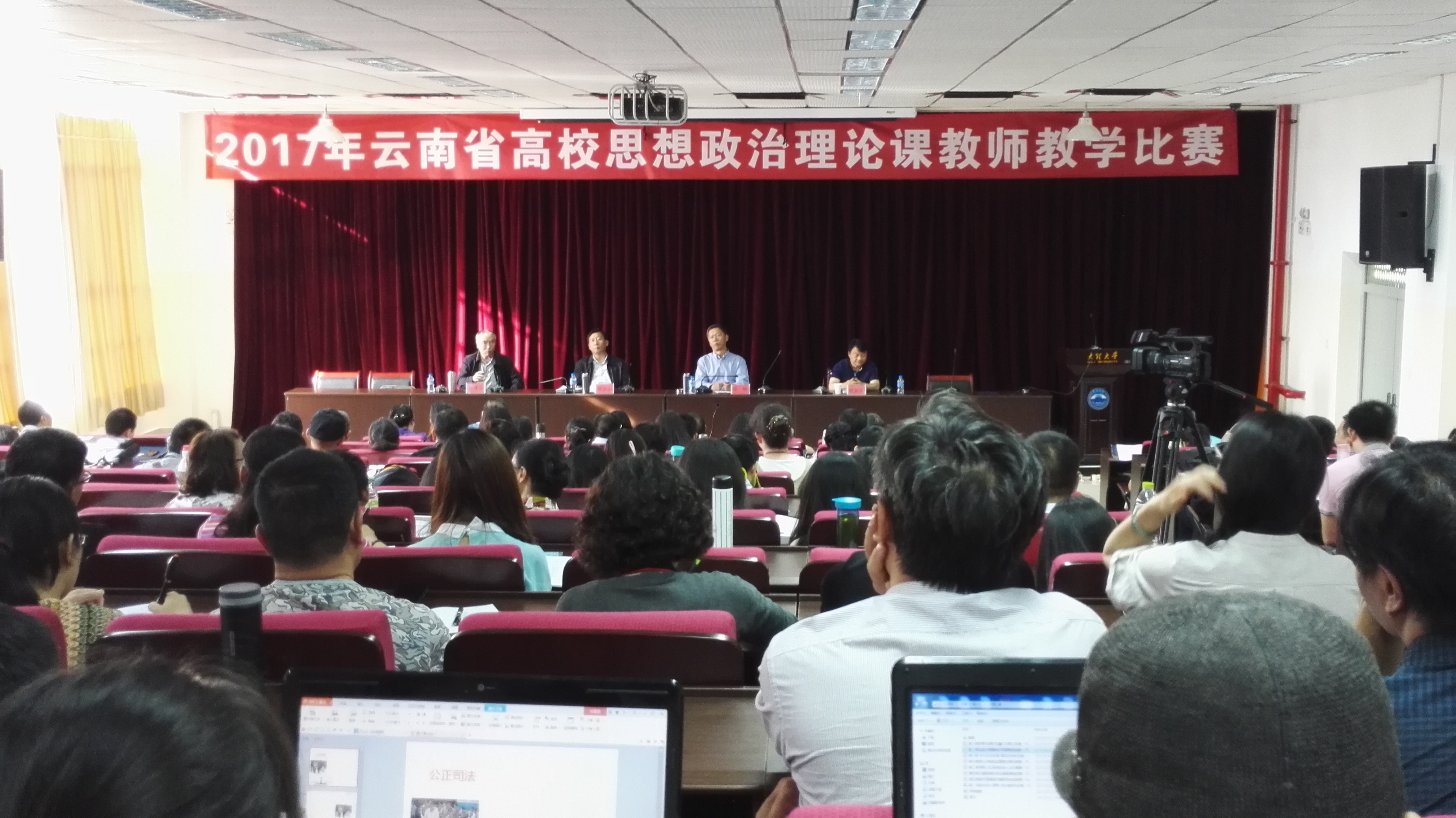 2017年6月24至25日,由云南省委高校工委主办的2017年云南省高校思想政治理论课教师教学比赛在大理大学举行。来自全省60多所高校的142名教师参加比赛,近200余名教师进行了观摩。学院思政部选派黄稳书、吴徐巧芸2位教师参赛,李如良主任、朵尔奎老师到现场观摩。黄稳书老师参加副教授《毛泽东思想和中国特色社会主义理论体系概论》组比赛,吴徐巧芸老师参加青年教师《思想道德修养与法律基础》组的比赛。经过认真准备和激烈角逐,吴徐巧芸老师荣获青年教师《思想道德修养与法律基础》组三等奖。黄稳书老师获得副教授优秀奖。
