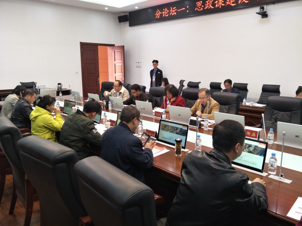 分论坛研讨分三个会场同时进行,分别以“思政课建设的使命与师资队伍建设”“思政课改革创新的条件”“思政课的嵌入内容及形式”为主题进行研讨,我校教师李如良在分论坛上作《从三个维度谈把立德树人根本任务落到实处》的发言,黄稳书老师作《如何建设新时代思想政治理论课教师队伍》的发言。