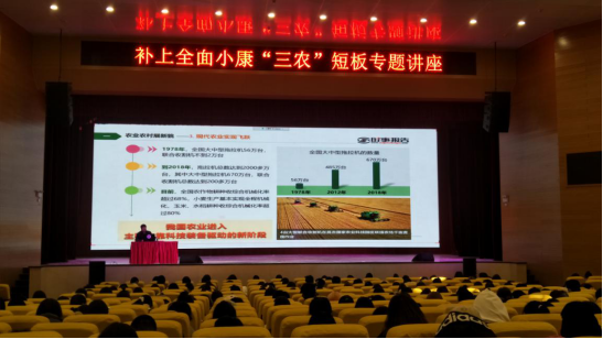 随后,刘宁飞副院长围绕“农业农村展新貌,对标对表补短板,决战决胜攻坚战”三方面,结合中国现状详细讲述了全面建成小康社会,最突出的短板在“三农”。一是发展基础短板。如农业基础设施、农业环境问题、水资源供需矛盾等问题还比较突出。二是供给结构短板。突出表现为农产品供给结构对需求变化的适应性不强,供求结构性错位。三是生产效率短板。表现为农业粗放生产方式尚未得到根本转变,农业生产效率与发达国家存在较大差距,远低于二三产业。