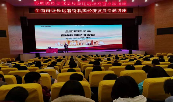 12月7日,党委副书记仲新老师为我校2018级、2019级、2020级全体大学生讲授了以“全面辩证长远看待我国经济发展”为主题的形《势与政策》课,仲老师用辩证的方法分析了我国经济的发展,让同学们对我国经济态势有了更加深刻的认识和理解。