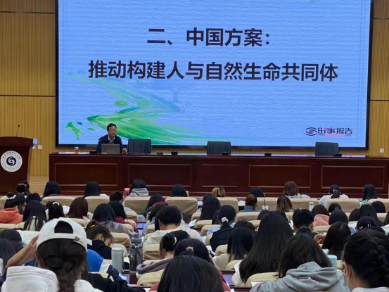 2021年10月21日,校长陶昌学同志在图书馆报告厅为我校2020级300多名大学生上“共同构建人与自然生命共同体”形势与政策专题课。