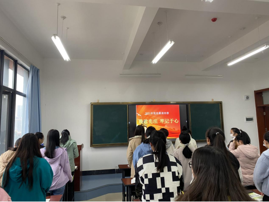2021年12月4日是第八个国家宪法日,同时,2021年11月29日至12月3日也是我国第四个“宪法宣传周”。为认真学习贯彻习近平法治思想,深入贯彻落实党的十九大和十九届六中全会以及宪法学习宣传教育的系列重要精神,弘扬宪法精神,维护宪法权威,按照教育部全国教育普法领导小组办公室《关于开展2021年教育系统“宪法宣传周”系列活动的通知》(教普法办函〔2021)5号)和云南省教育厅关于开展2021年全省教育系统“宪法宣传周”系列活动的通知要求,思政部于2021年11月29日-12月3日组织全体专兼职教师在任课班级开展了以“以习近平法治思想为引领,深入学习宣传宪法”为主题的宪法晨读活动。