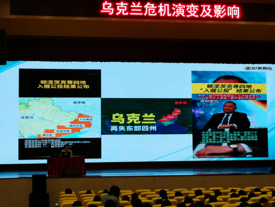 2022年9月29日下午,学校党委书记张金甫在学校大礼堂为我校2020级600多名学生上了一堂题为“乌克兰危机演变及影响”的形势与政策专题讲座。