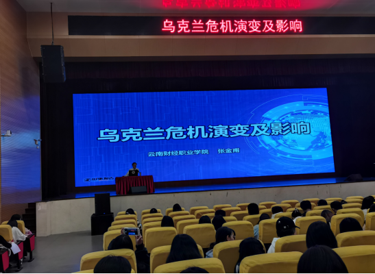张金甫老师通过阐述乌克兰危机的复杂历史经纬,指出乌克兰局势走到今天这一步是各种因素综合作用的结果,也是多年积累矛盾的爆发。通过阐释乌克兰危机中金融战、信息战、舆论战等在内的“混合战”格外激烈的多维较量,让学生更加深入全面了解乌克兰问题。通过讲解乌克兰危机对国际社会的广泛影响,明确坚定的中国立场——中国向来从事情本身的是非曲直出发独立自主作出判断,主张共同、综合、合作、可持续的安全观,一直致力于劝和促谈,积极向乌克兰民众提供人道主义援助。