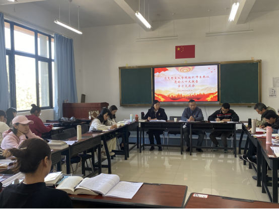 时间的脚步铿锵有力,在万众瞩目中,2022年10月16日,中国共产党第二十次全国代表大会在北京隆重开幕。上午10时,在学校党委的统筹下,马克思主义学院党支部组织全体党员在学校铭德楼202教室认真观看党的二十大开幕盛况。20日下午,马克思主义学院组织师生召开党的二十大精神学习交流会。