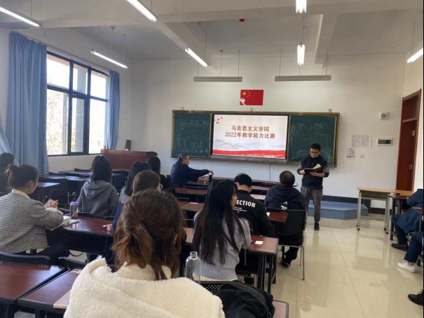 思想政治理论课是落实立德树人根本任务的关键课程。习近平总书记强调:“办好思想政治理论课关键在教师,关键在发挥教师的积极性、主动性、创造性。”为全面提高我校人才培养质量,强化青年教师教学、教研能力。马克思主义学院于2022年11月17日在铭德楼举行青年教师公开课教学能力比赛,12位青年教师参加比赛,学校党委委员、宣传部部长亲临指导并担任评委。