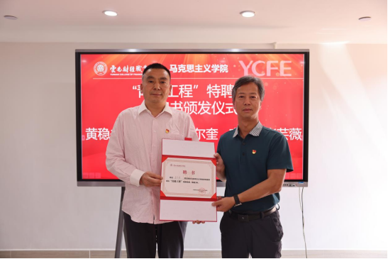 支部推选的选手在2023年“云岭师生说”比赛中获语言类学生组优秀奖,学校宣传部部长给获奖选手颁发了奖状。
