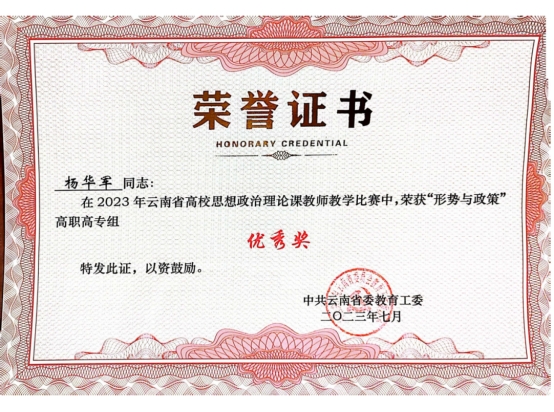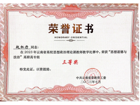 为深入贯彻落实习近平总书记关于“大思政课”建设的重要指示批示精神,深入推进新时代高校思想政治理论课改革创新行动计划,2023年6月,省委教育工委举办2023年全省高校思想政治理论课教师教学比赛。我校马克思主义学院2名教师荣获三等奖,2名教师荣获优秀奖。在比赛中,我校张萌老师荣获《习近平新时代中国特色社会主义思想概论》组三等奖,赵红丹老师荣获《思想道德与法治》组三等奖,王紫薇老师荣获《毛泽东思想和中国特色社会主义理论体系概论》组优秀奖,杨华军老师荣获《形势与政策》组优秀奖。