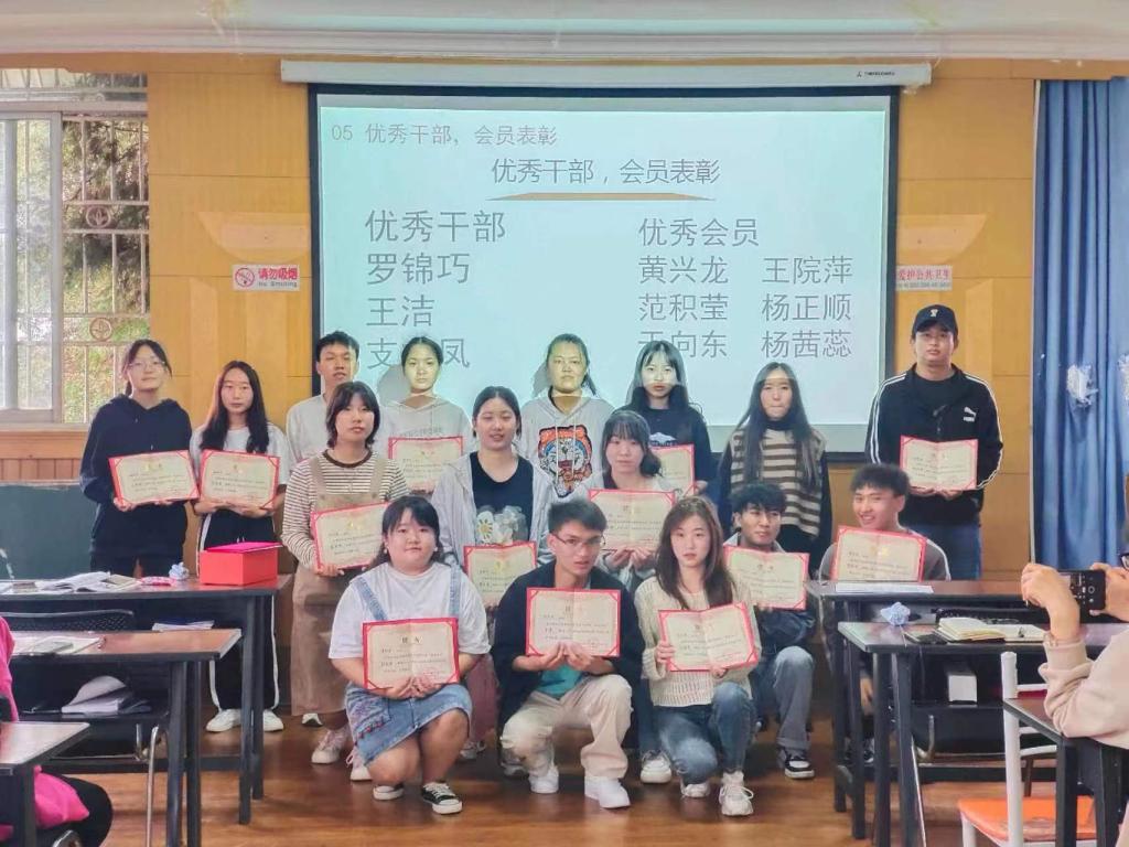 最后一个流程会长、副会长向大家介绍图书馆承办的全国“信息素养大赛”和云南高校“中华思想文化术语—中华新青年”大赛,详细介绍了比赛内容、相关事宜和报名流程等事项,并对两大国赛进行了各版块负责人的安排。会议最后副会长为本次活动致结束语,团支书宣布本次见面会、表彰会圆满结束,全体读者协会新成员合影留念。