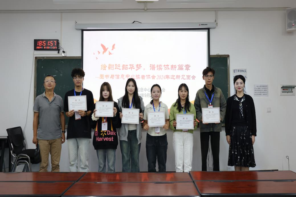 为丰富读者协会活动,增进新老成员情感交流,激发工作动力,推动协会发展。图书与信息中心于2024年9月23日下午18:00在铭德楼603举行读者协会迎新见面会。图书与信息中心副主任全玲、陆卫东老师、米雪老师及读者协会全体会员参加。