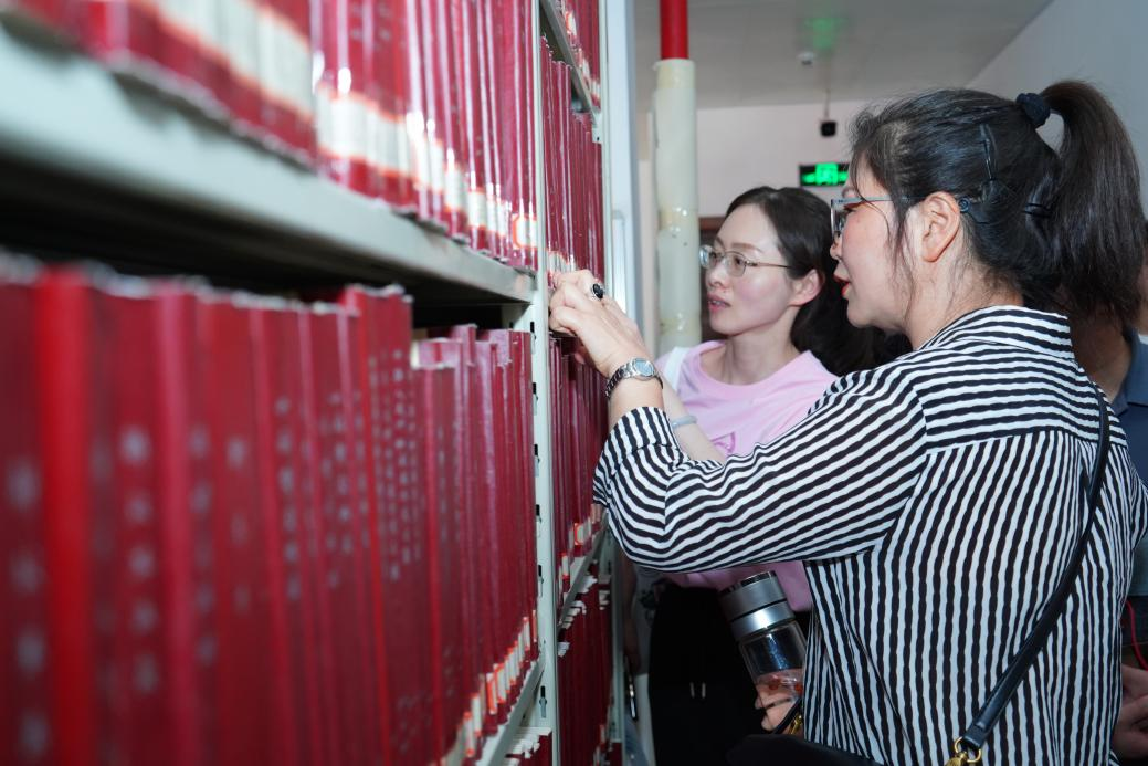 交流团队先后走访图书馆流通服务区、档案馆库房。在图书馆,赵国庆主任一行现场体验自助借还系统、图书盘点设备;在档案馆,重点考察了库房建设及磁介质载体专用存储设施,双方就档案收集及安全防护等实操细节展开技术探讨。