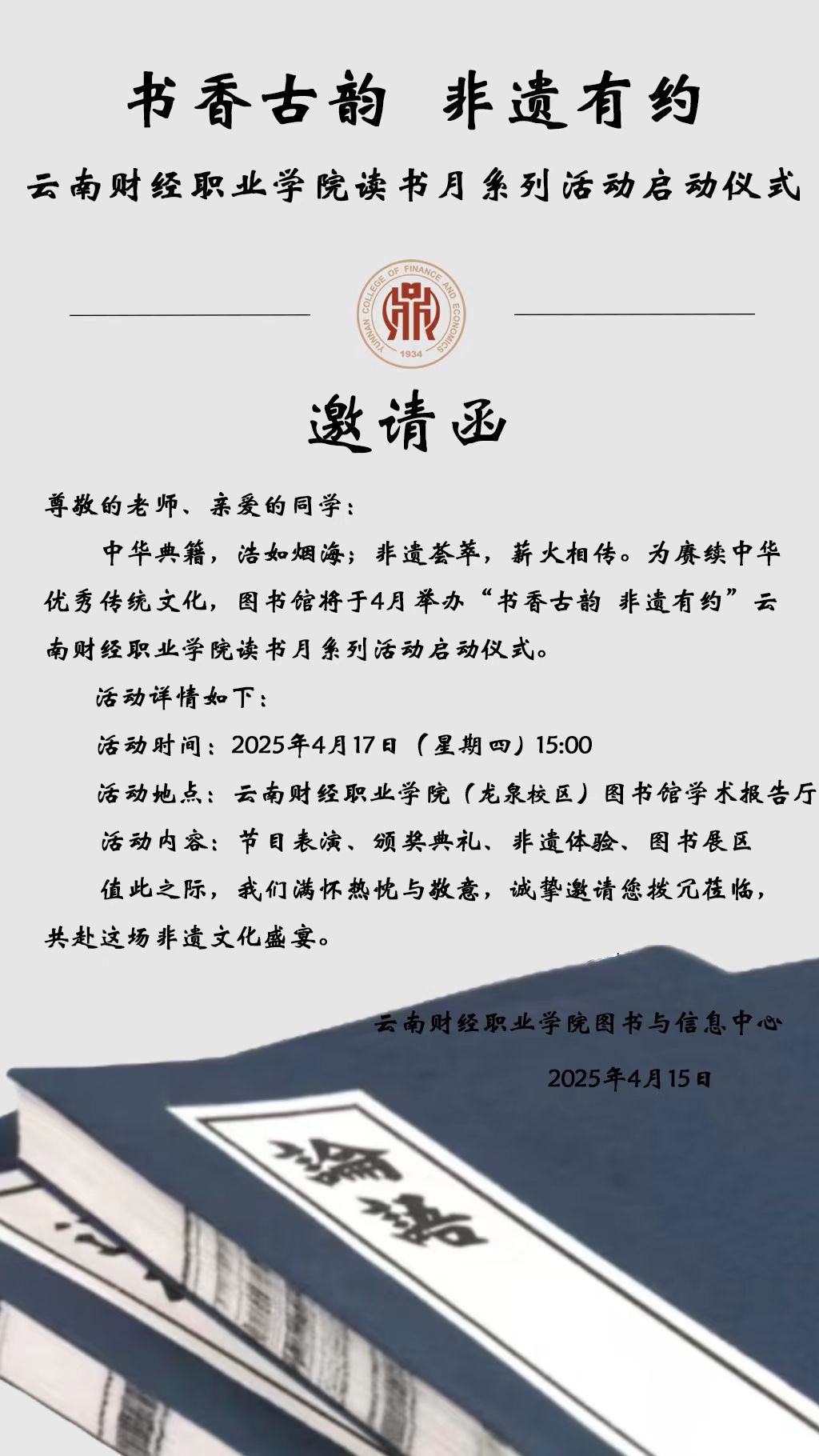 书香古韵,非遗有约——读书月系列活动启动仪式邀请函