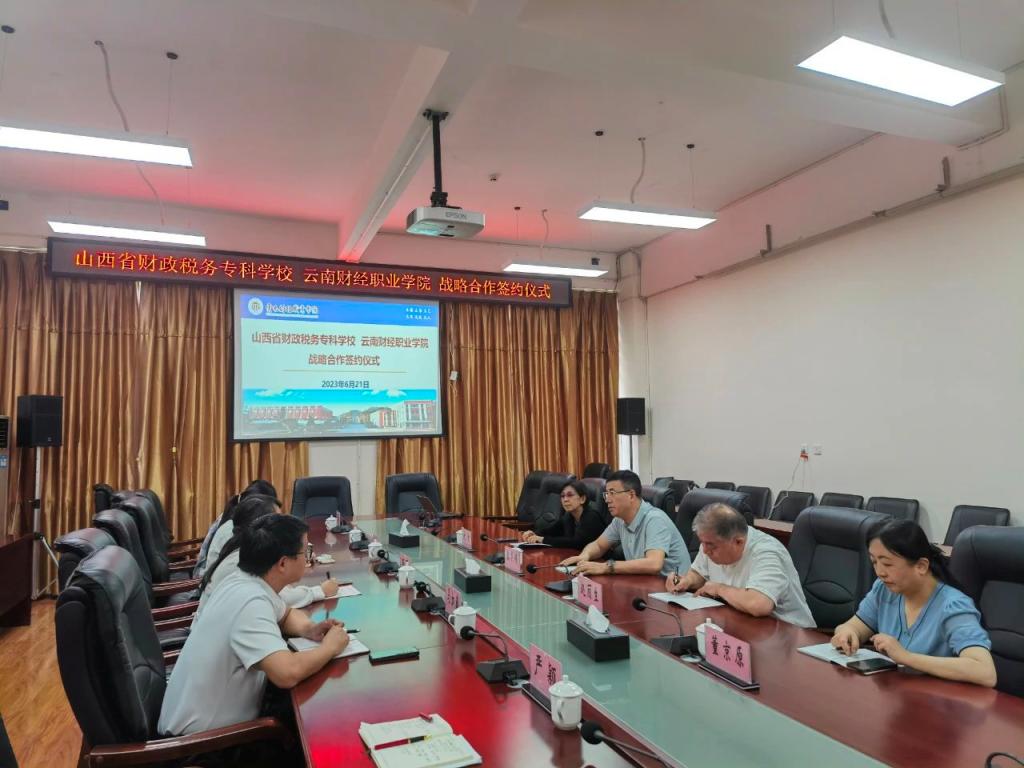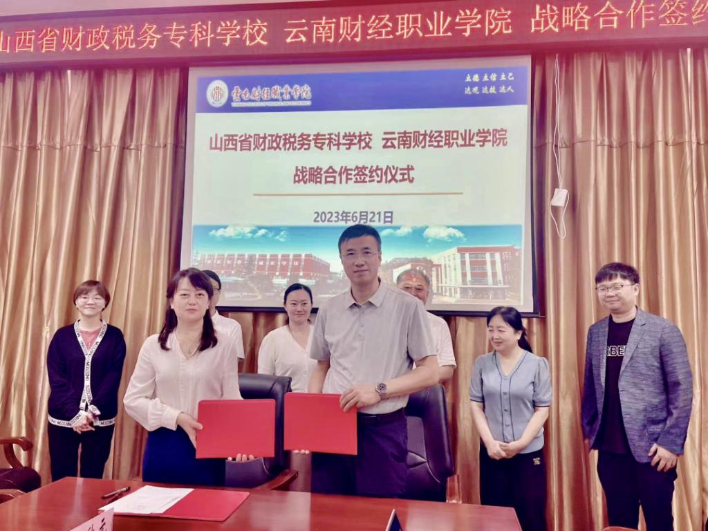 最后邹丽和秦华伟代表两校签署《云南财经职业学院与山西省财政税务专科学校战略合作协议》。双方将不断维护、发展、巩固好两校合作关系,不断深化合作内容,拓展合作领域,让双方合作走得更好、更远、更实。
