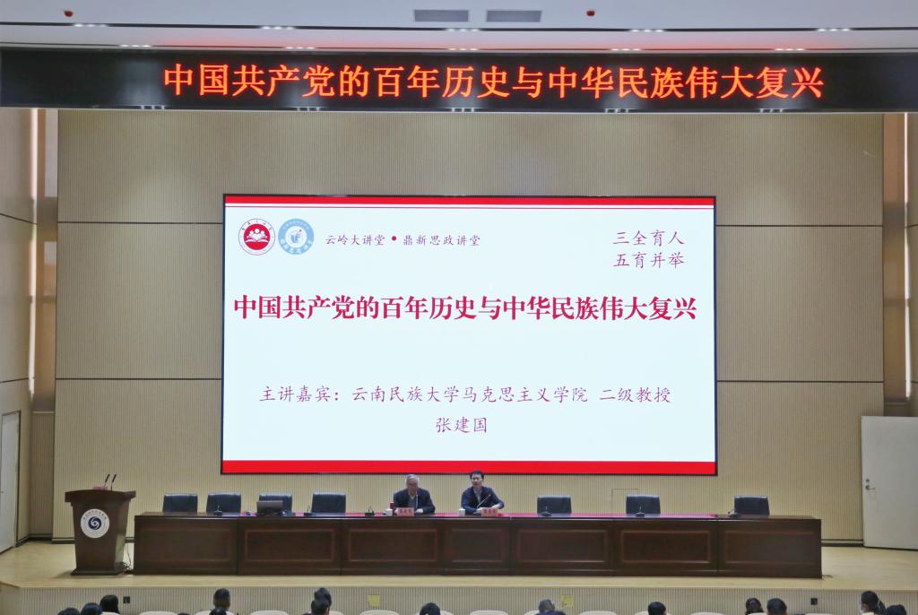 为深入学习贯彻党的二十大精神,11月3日下午学校举行“云岭大讲堂·鼎新思政讲堂”2022年度第三场讲座暨云南省高校百场形势政策报告会和学习党的二十大精神专题报告会。学校党委书记张金甫主持报告会,教育部全国高校思想政治理论课教学指导委员会分教指委委员、云南省高等学校思想政治理论课教学研究会会长、...