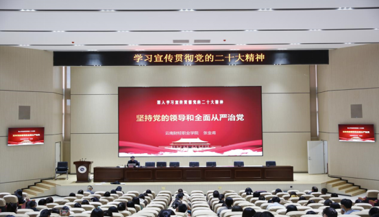 为深入学习宣传贯彻党的二十大精神,我校“书记、校长同讲一堂思政课——学习宣传贯彻党的二十大精神”于2022年12月1日下午在学校新报告厅开讲。学校党委书记张金甫以“坚持党的领导和全面从严治党”为题,从“为什么——全面从严治党”“干了什么——新时代伟大实践”“怎么样——成就和经验总结”和“怎么干...