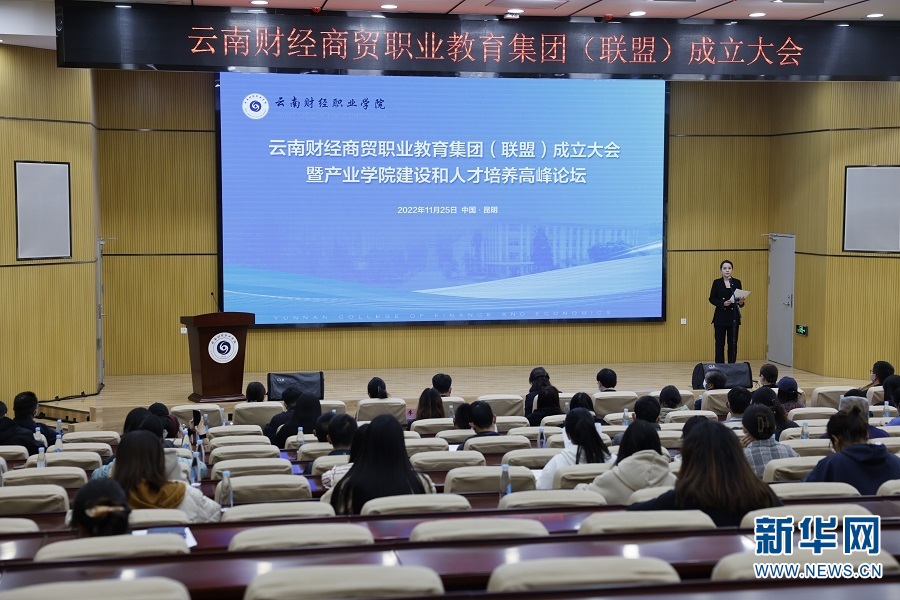 会议现场(11月25日摄)。新华网发(赵颖洁 摄)25日,云南财经商贸职业教育集团(联盟)成立大会暨产业学院建设和人才培养高峰论坛由云南财经职业学院牵头举行。据介绍,云南财经商贸职业教育集团(联盟)是以职业教育服务云南区域经济和社会发展为宗旨,以政、校、企、行合作共建为平台,以开放办学、产教融...